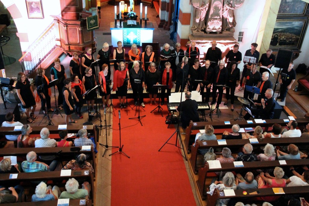 Herrlich kühl war es in der ev. Stadtkirche, im Gegensatz zu den über 30 Grad draußen. Unter dem Titel „Sweet Dreams of Freedom and Peace“ hatte der Blues Chor Laubach wieder seinen festen Platz um 18 Uhr in der Kirche.