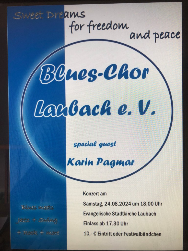 Und mit dabei natürlich unser Chor! Wir haben für euch wieder ein tolles Programm zusammengestellt. Freut euch auf einige bekannte, aber auch viele neue Songs, die wir euch mit voller Leidenschaft am Samstag den 24. August ab 18:00 Uhr in der Laubacher Stadtkirche präsentieren wollen. Mit dabei dieses Jahr auch wieder Karin Pagmar als „special guest“.